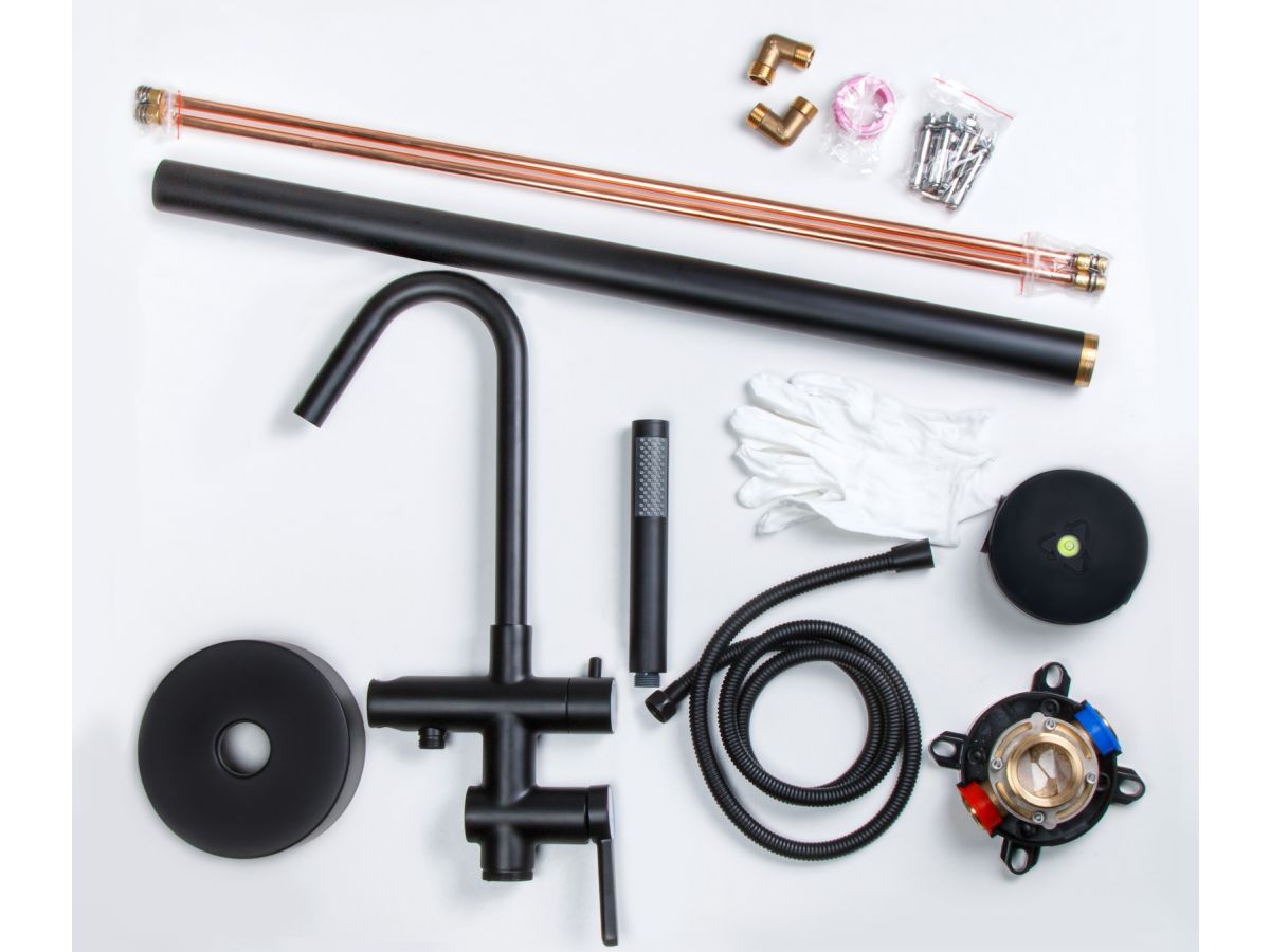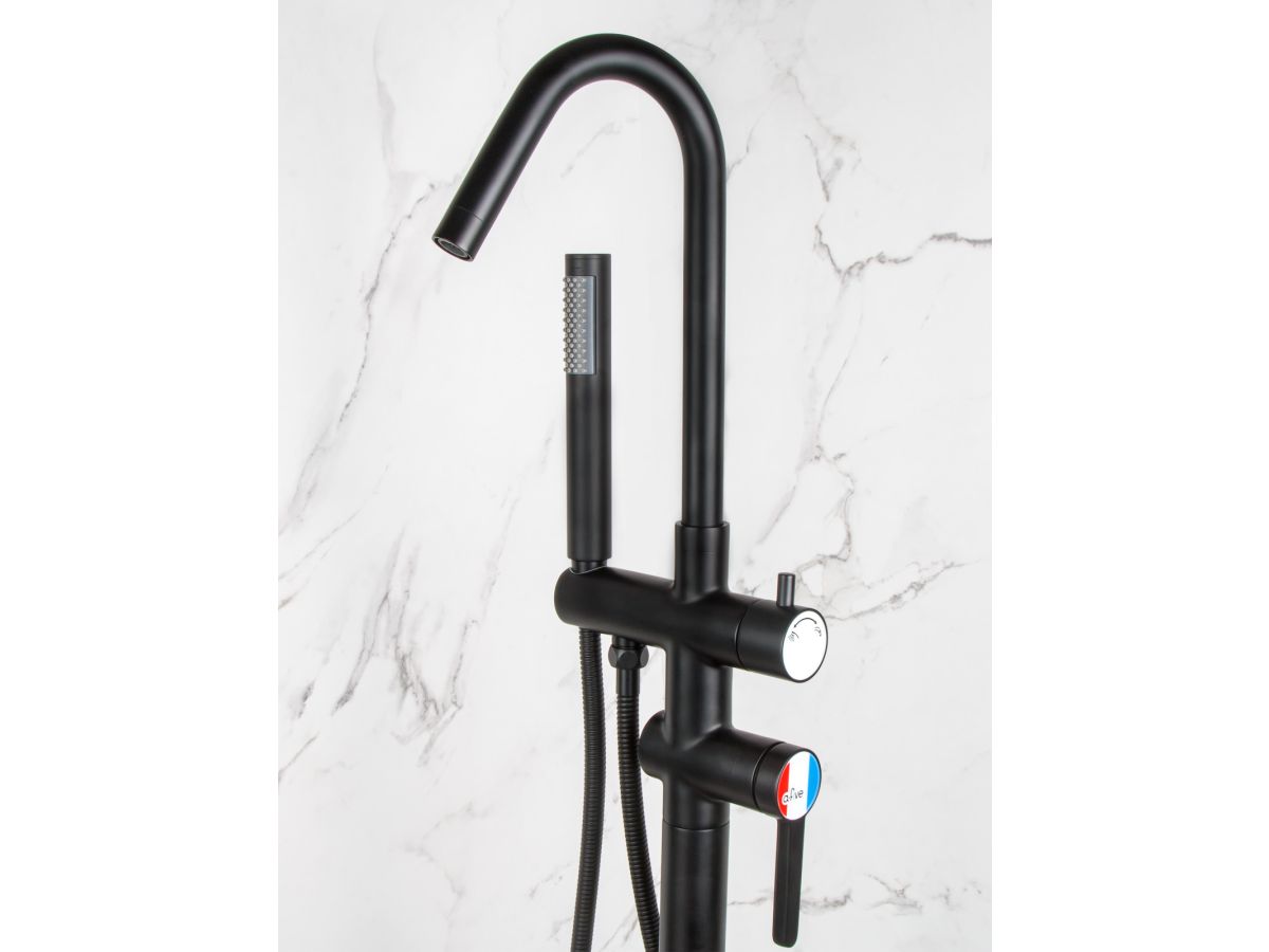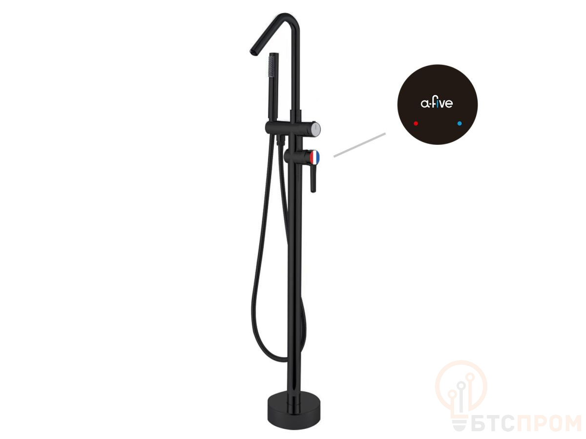 Смеситель для ванны (Lt) D35, серия Lotus черный, a-five (Отдельностоящий, Поворотный С-излив 180 мм. Лейка и шланг в комплекте) A5-0630