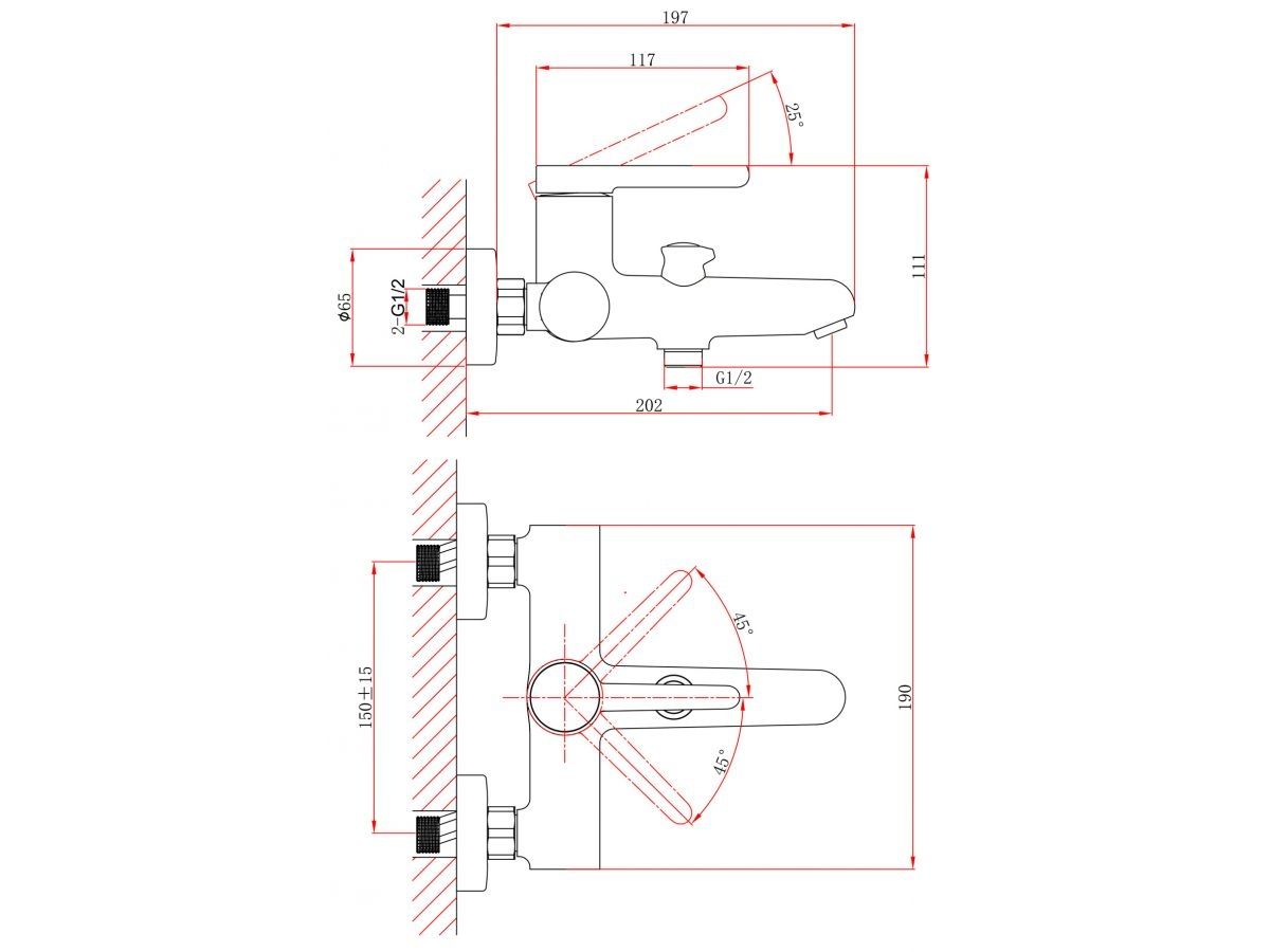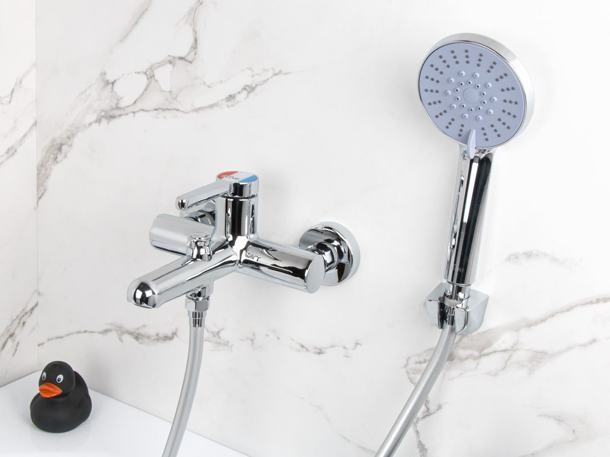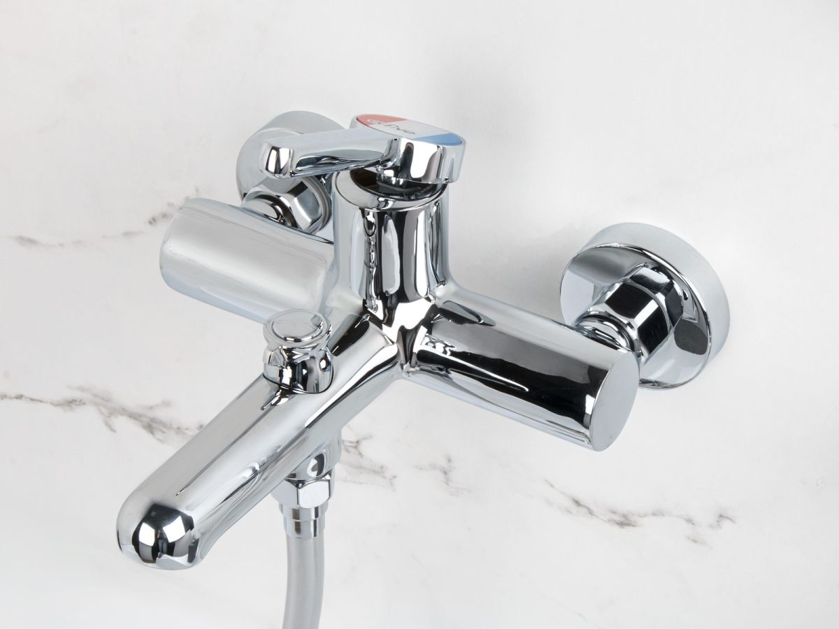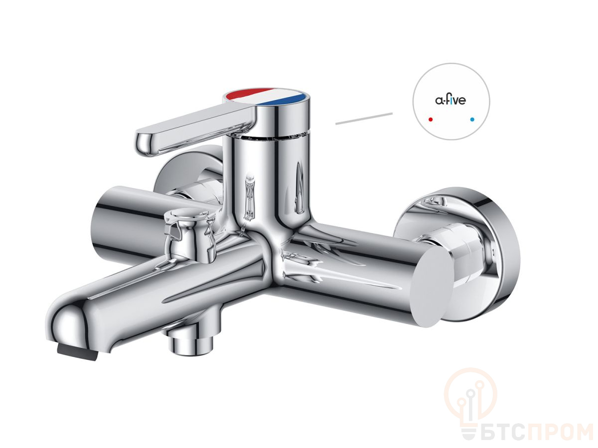 Смеситель для ванны (Lt) D35, серия Lotus хром, a-five (На стену, Короткий излив 202 мм. Лейка и шланг в комплекте) A5-0532