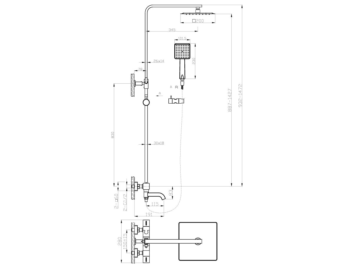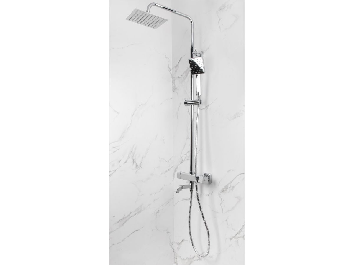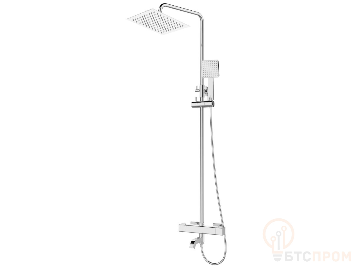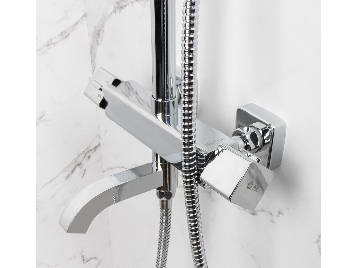 Душевая термостатическая система с изливом (Lt), серия THS хром, AV Engineering (Короткий излив, длина 115 мм, лейка и шланг в комплекте, монолитный, на стену) AVTHS2-P42-513A