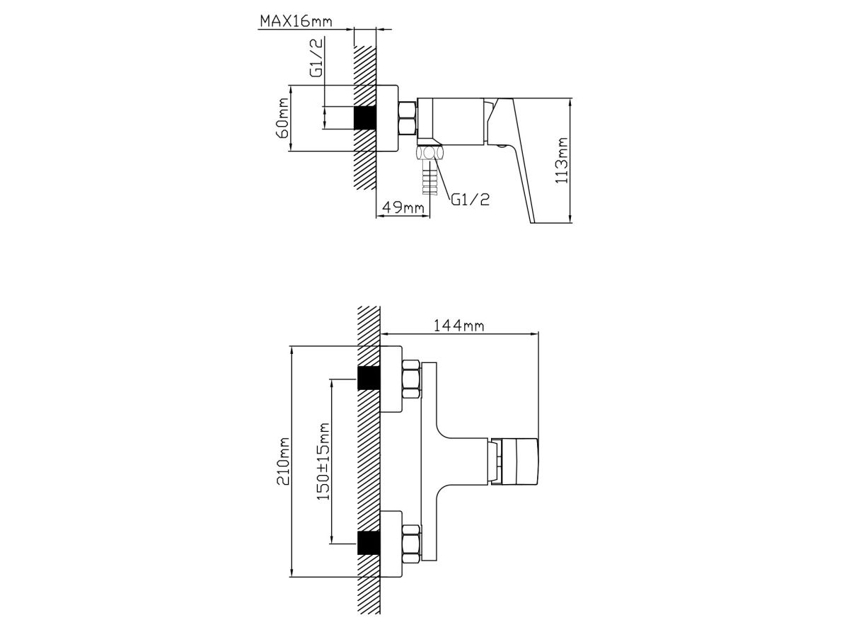 Смеситель для душа (Lt) D35, серия NEO AV Engineering (Без излива, эксцентриков нет, лейка и душ в комплекте) AVNEO5-A170-121