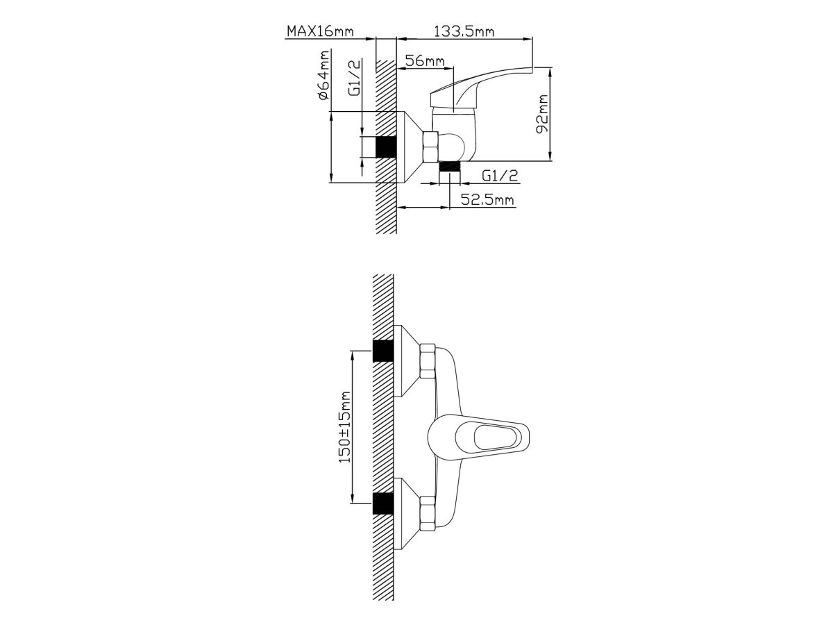 Смеситель для душа (Lt) D35, серия URS AV Engineering (Без излива, эксцентриков нет, лейка и душ в комплекте) AVURS5-A120-220