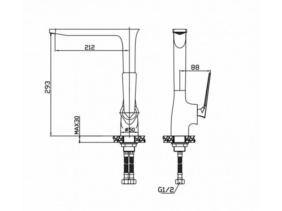 Смеситель для кухни (Lt) D35, серия JWL AV Engineering (Длинный излив, длина 212 мм, высота 293 мм, монолитный) AVJWL4-B224-281