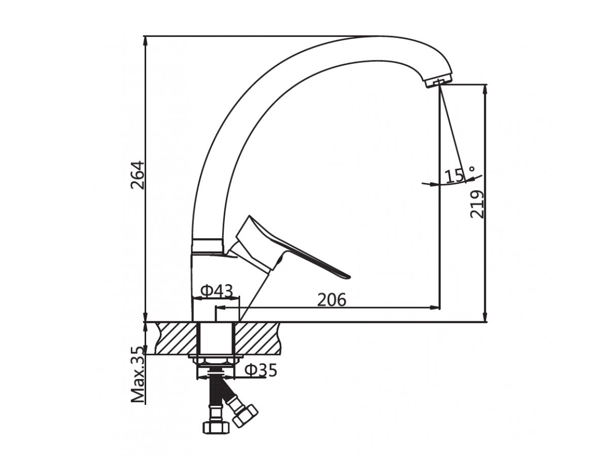 Смеситель для кухни (Lt) D35, серия LAW AV Engineering (J-излив, длина 206 мм, высота 219 мм, поворотный) AVLAW4-A589-635
