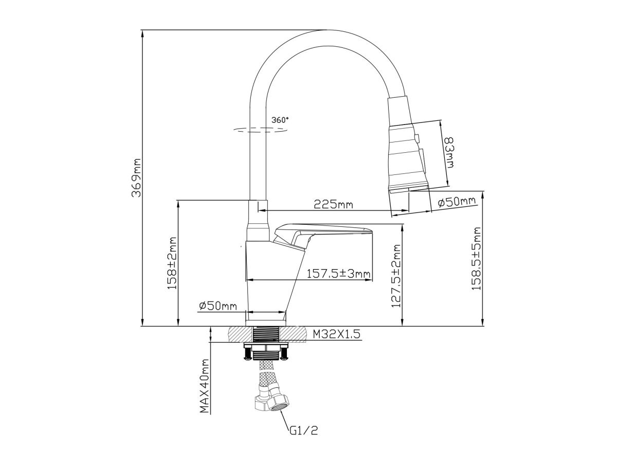 Смеситель для кухни (Lt) D35, серия POS AV Engineering (J-излив, длина 225 мм, высота 158 мм, поворотный) AVPOS4-A172-141