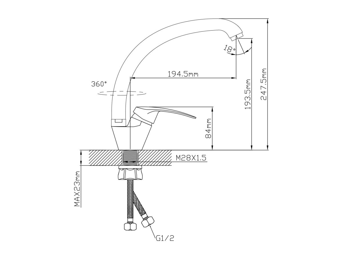 Смеситель для кухни (Lt) D35, серия SHU AV Engineering (C-излив, длина 195 мм, высота 194 мм, поворотный) AVSHU4-A138-559