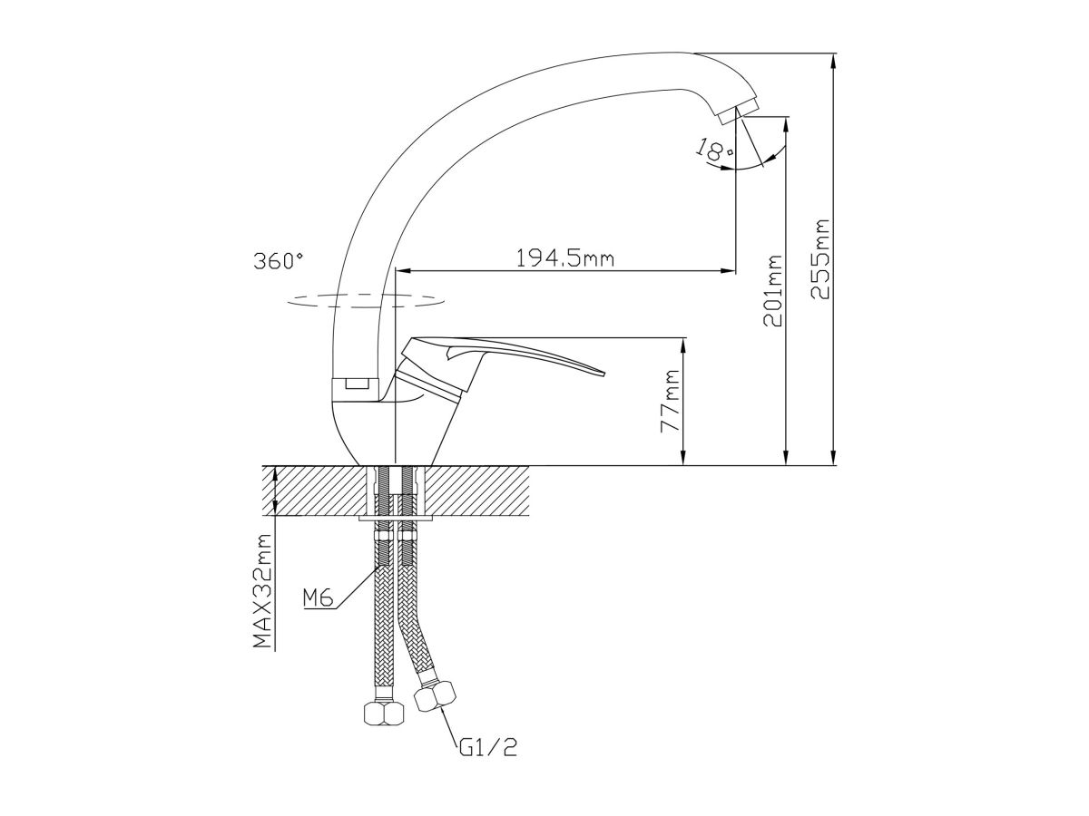 Смеситель для кухни (Lt) D35, серия SHU AV Engineering (С-излив, длина 195 мм, высота 201 мм, поворотный) AVSHU4-A134-439