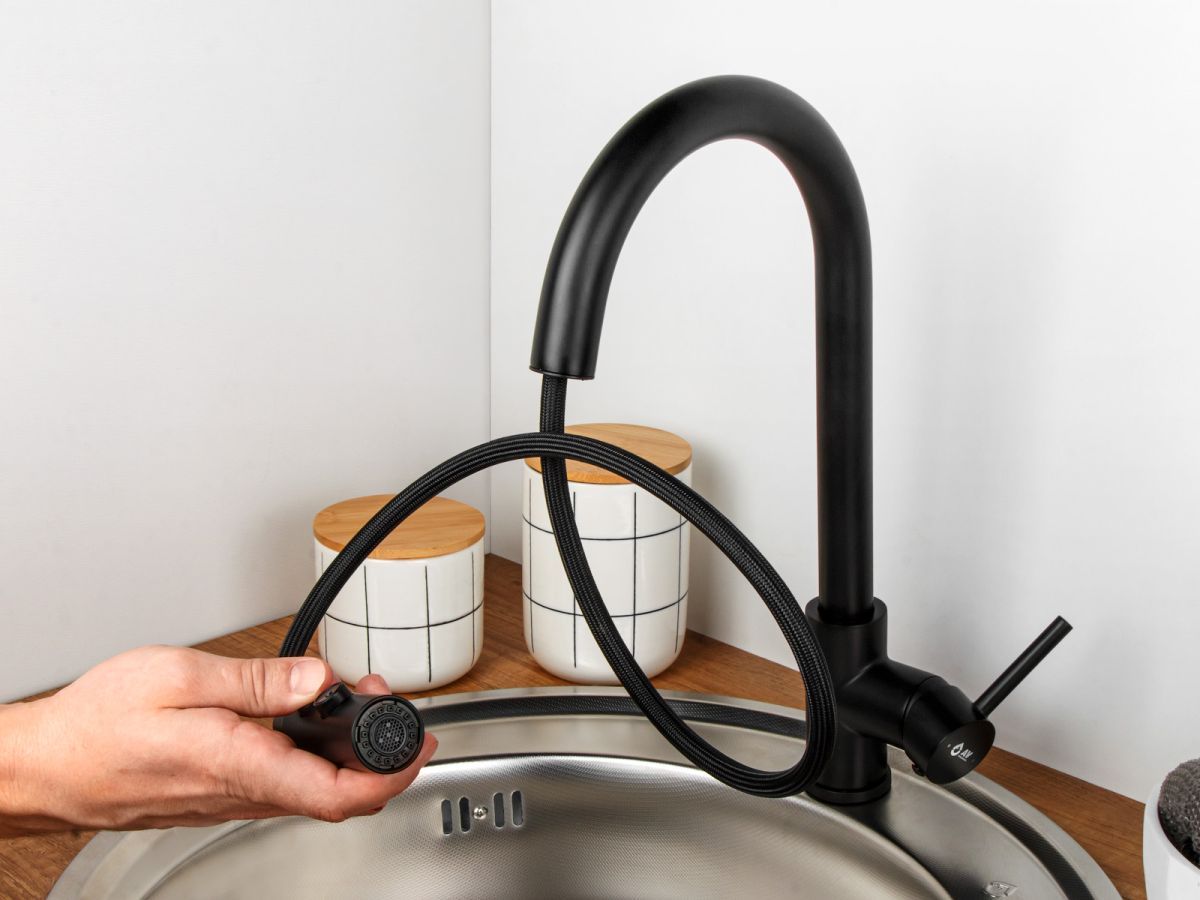 Смеситель для кухни (Lt) D35, серия TRO черный, AV Engineering (J-излив, длина 219 мм, высота 219 мм, пооворотный) AVTRO1-10698BL