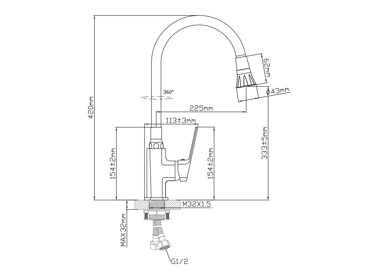 Смеситель для кухни (Lt) D35, серия WIN (black) AV Engineering (J-излив, длина 225 мм, высота 333 мм, поворотный) AVWIN4-BL165-141