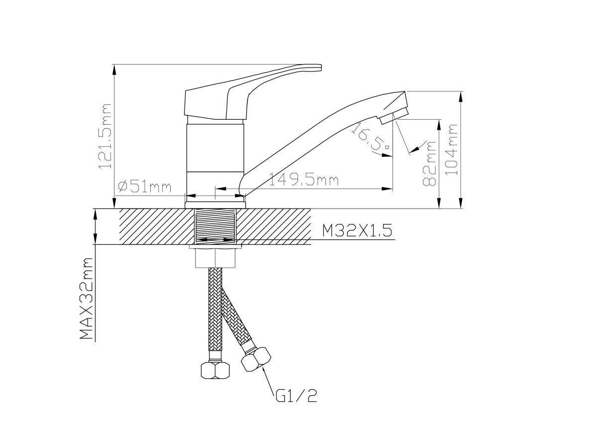 Угол поворота рукоятки гор.: 50°;