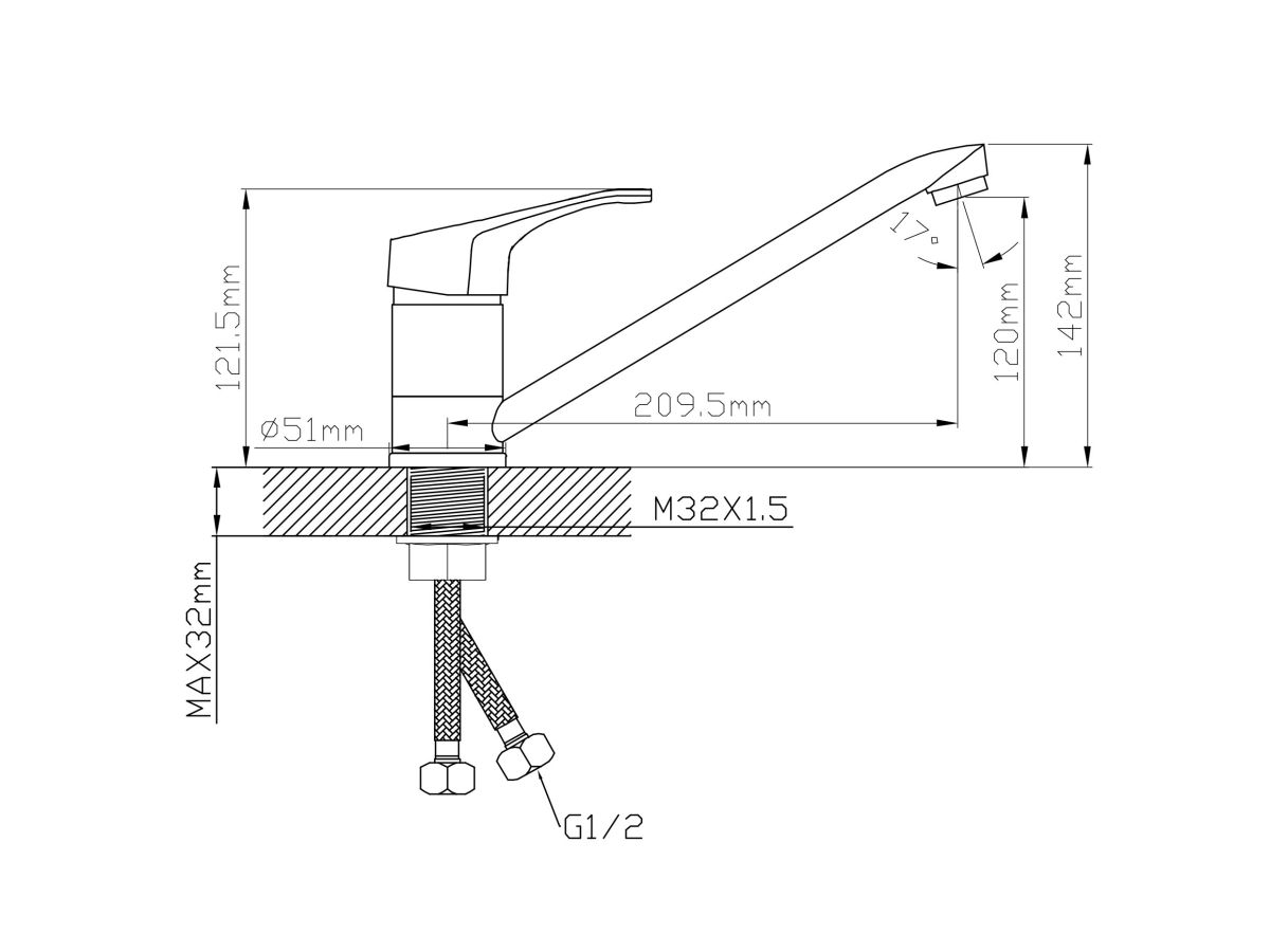 Смеситель для кухни (Lt) D40, серия BAS AV Engineering (Длинный L-излив, длина 209,5 мм, высота 142 мм, поворотный) AVBAS4-A294-449