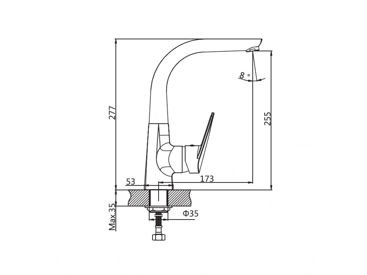 Смеситель для кухни (Lt) D40, серия CID AV Engineering (J-излив, длина 173 мм, высота 255 мм, поворотный) AVCID4-B557-611