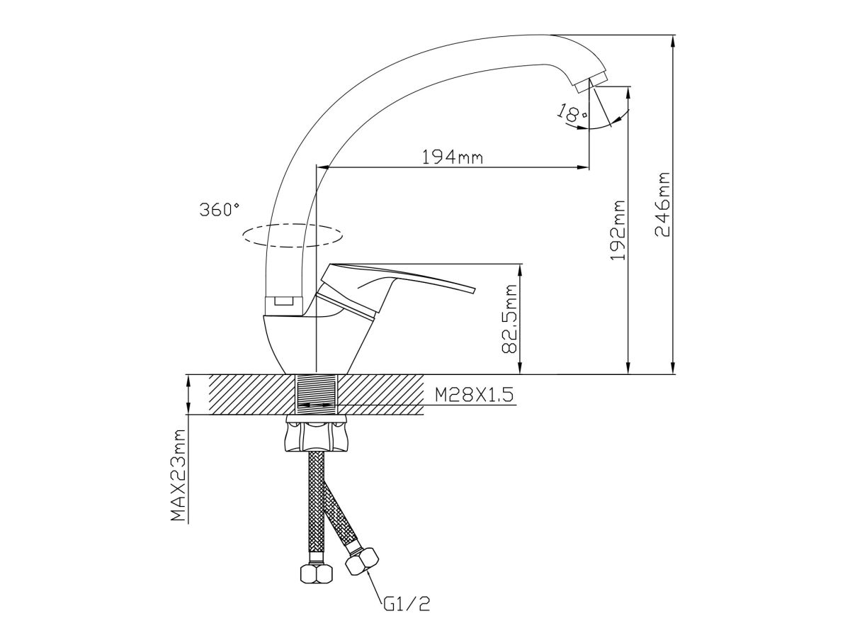 Смеситель для кухни (Lt) D40, серия ROM AV Engineering (С-излив, длина 158 мм, высота 232 мм, поворотный) AVROM4-A109-559