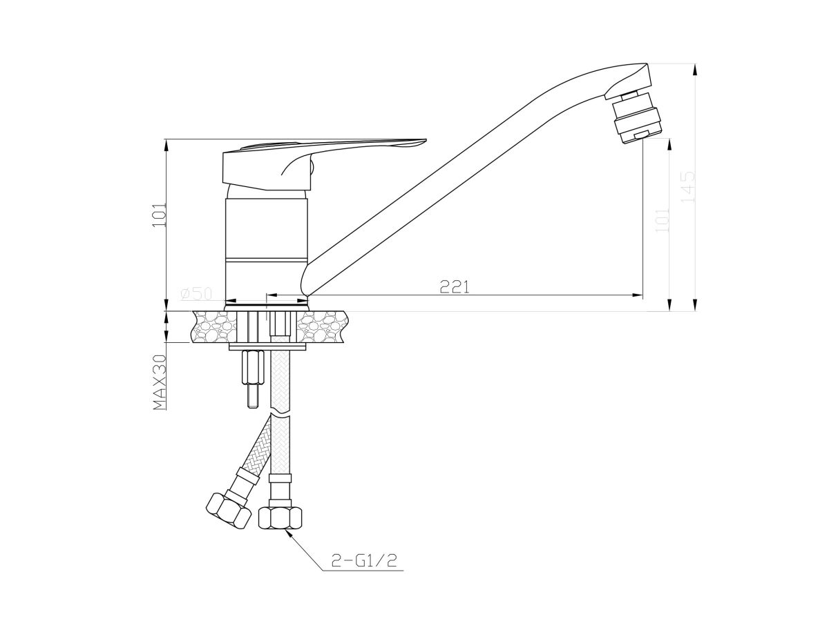 Смеситель для кухни (Lt) D40, серия XAN AV Engineering (Длинный L-излив, длина 221 мм, высота 101 мм, поворотный) AVXAN4-A016-239