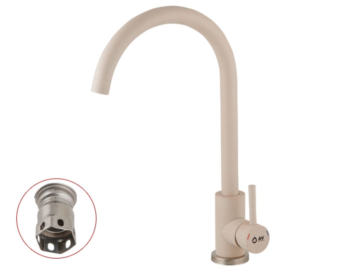 Смеситель для кухни (SUS 304) D35, серия ZAR гранит AV Engineering (J-излив, длина 180 мм, высота 250 мм, поворотный) AVZAR4-A304GT-731
