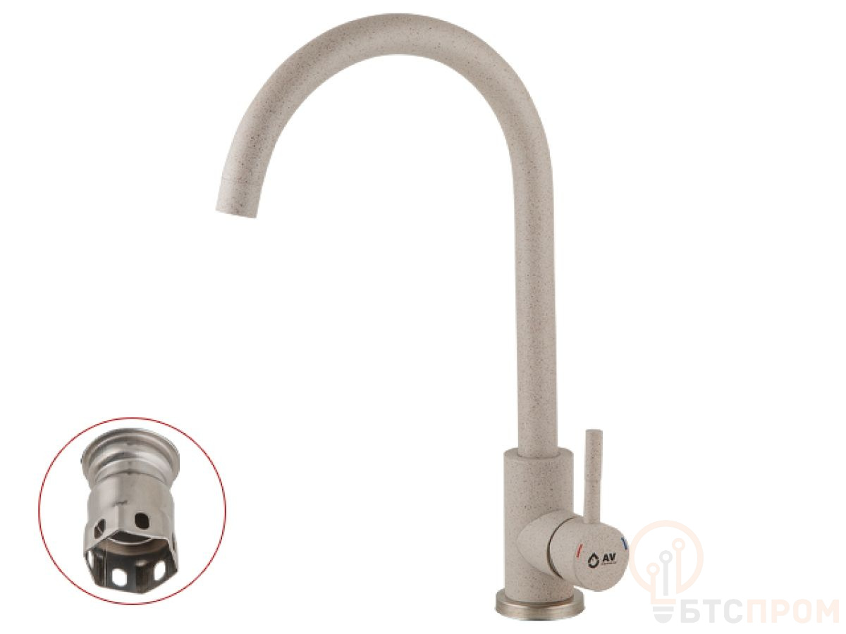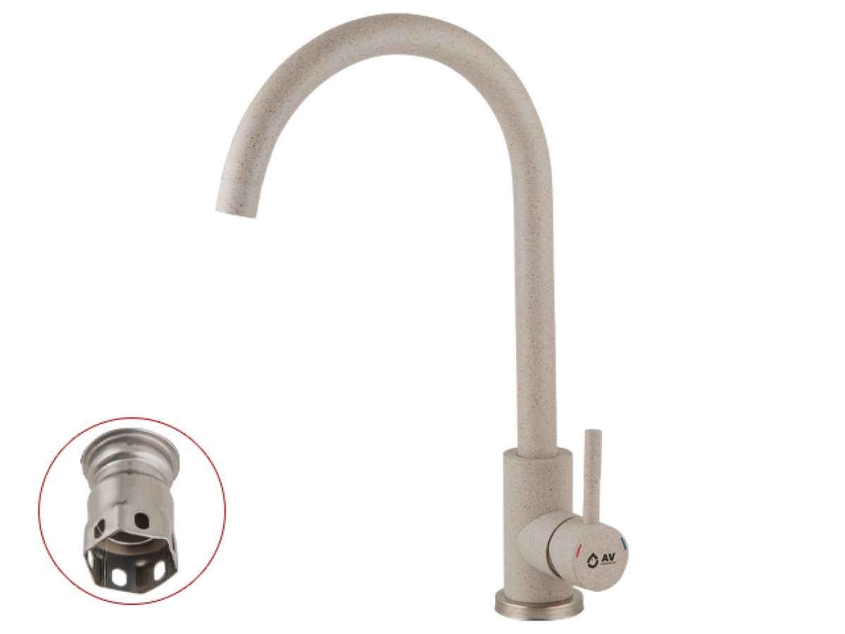 Смеситель для кухни (SUS 304) D35, серия ZAR песочный AV Engineering (J-излив, длина 180 мм, высота 250 мм, поворотный) AVZAR4-A304SN-733