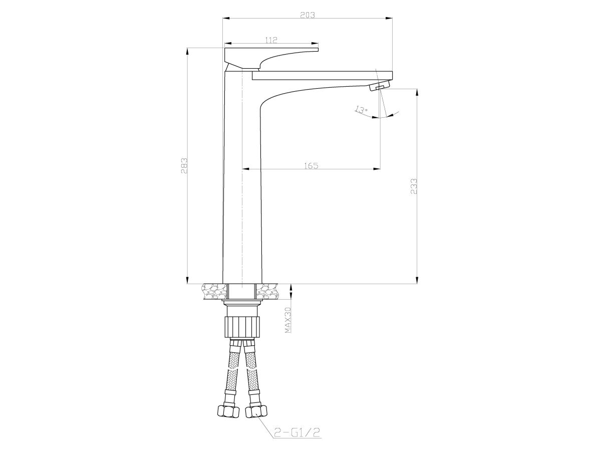 Смеситель для умывальника (Lt) D35, серия DAR, AV Engineering (Короткий излив, длина 165 мм, высота 233 мм, монолитный) AVDAR3-51015