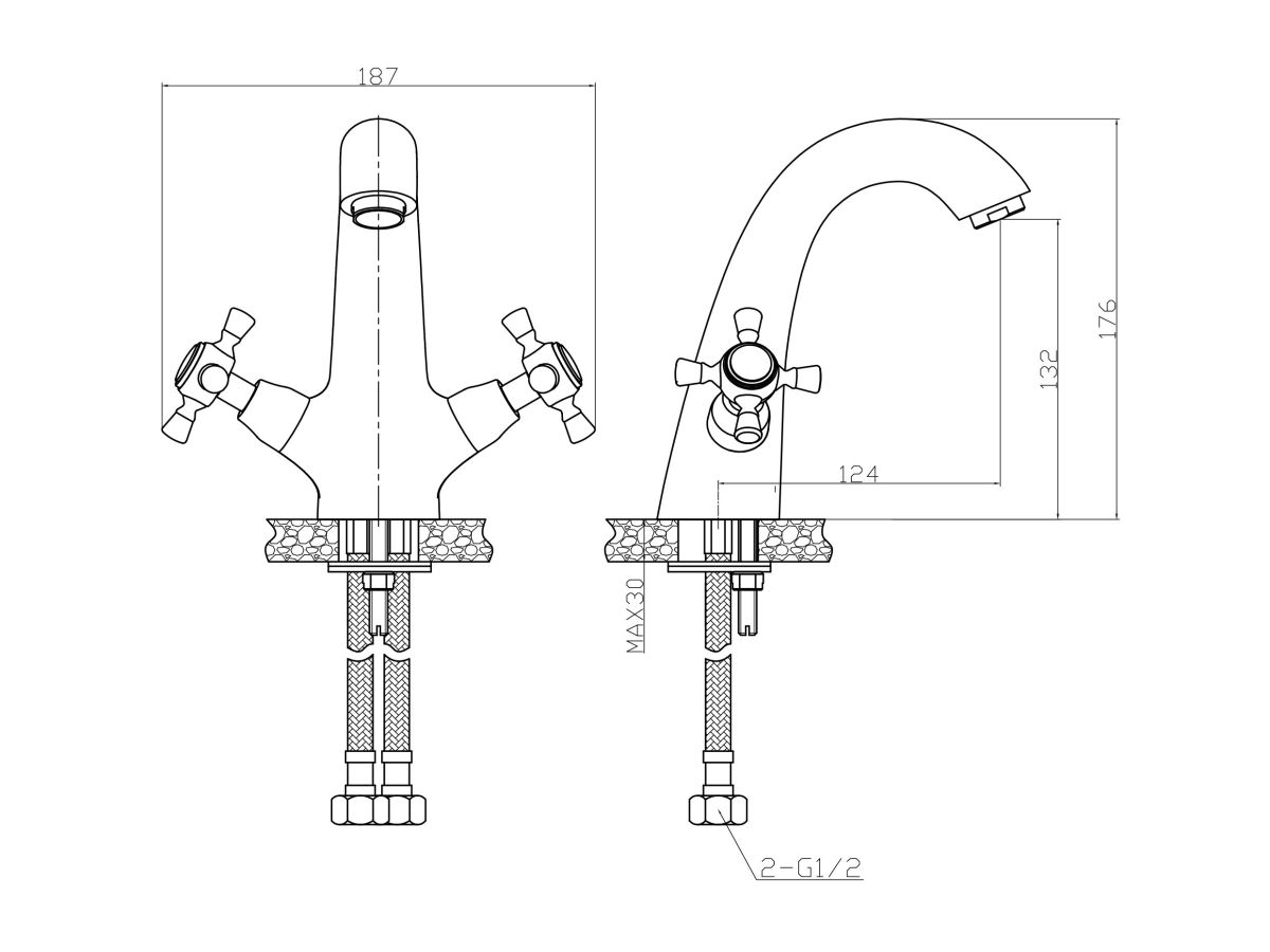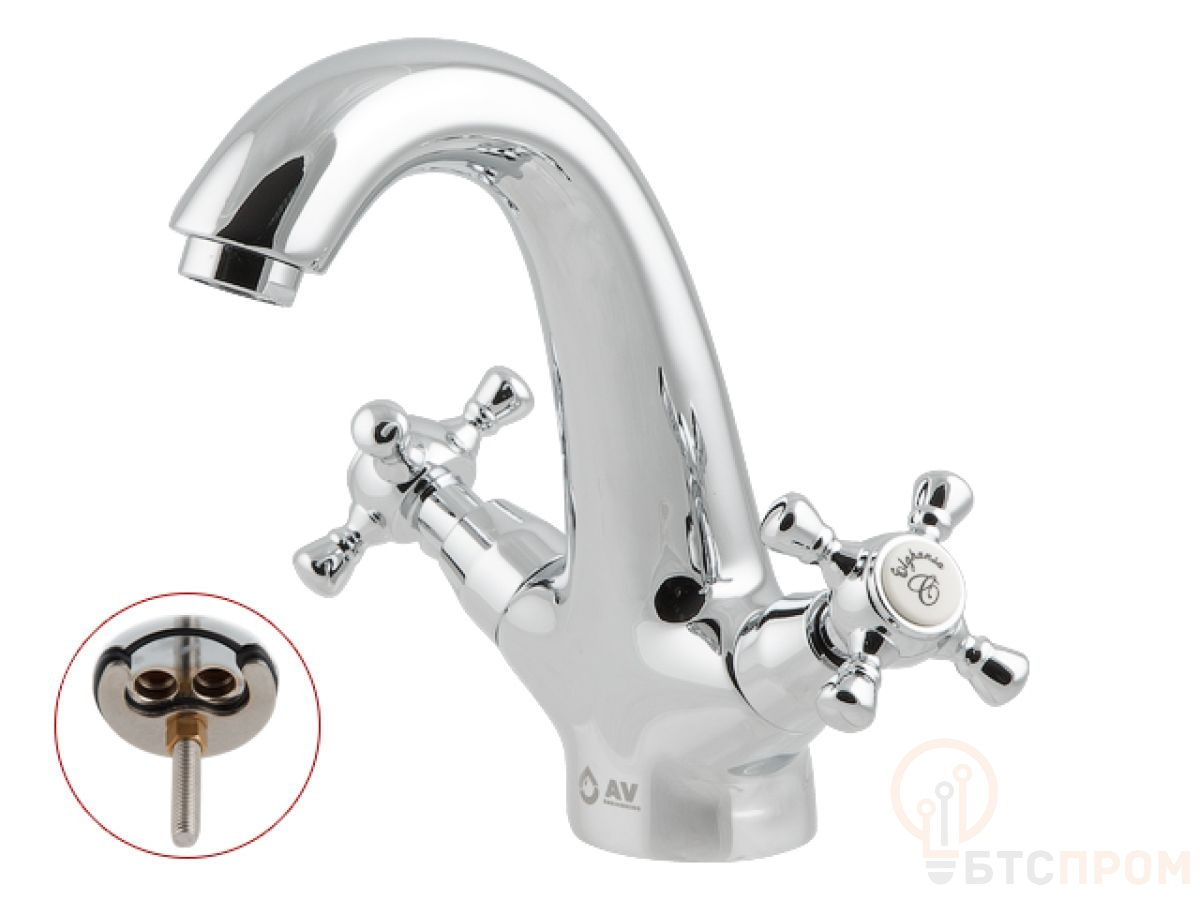 Смеситель для умывальника (Lt) вентильный, серия QNM AV Engineering (Короткий излив, длина 124 мм, высота 132 мм, монолитный) AVQNM1-A331-291