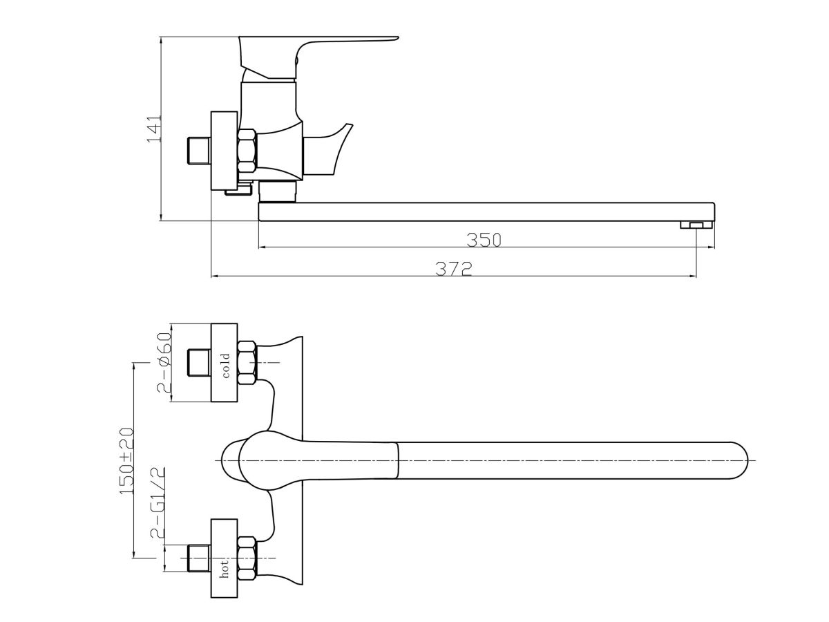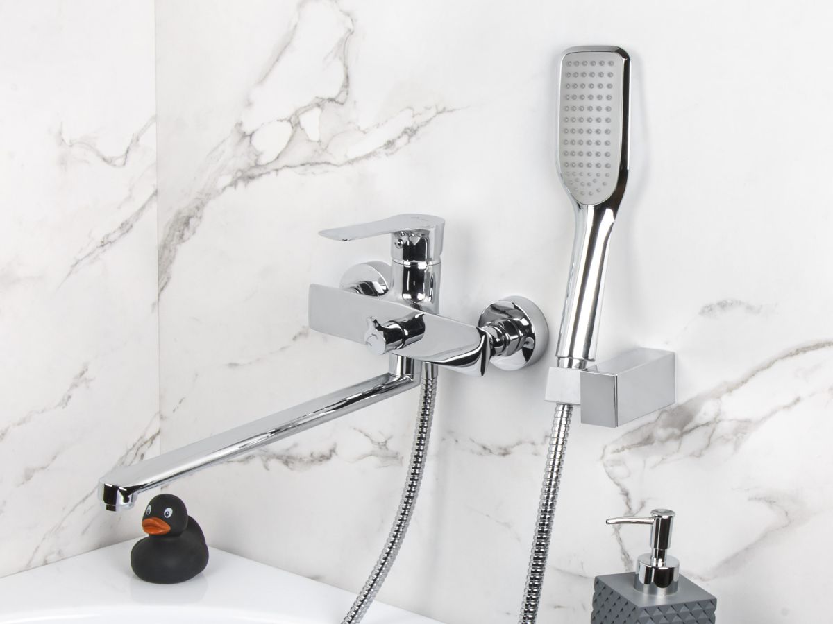 Смеситель для ванны (Lt) D35, серия JAR AV Engineering (Длинный L-излив, длина 350, лейка и шланг в комплекте, поворотный) AVJAR7-A236-263