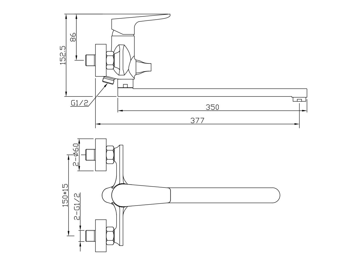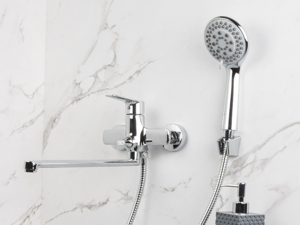 Смеситель для ванны (Lt) D35, серия PCK AV Engineering (Длинный излив, длина 350 мм, лейка и шланг в комплекте, поворотный) AVPCK7-A278-220