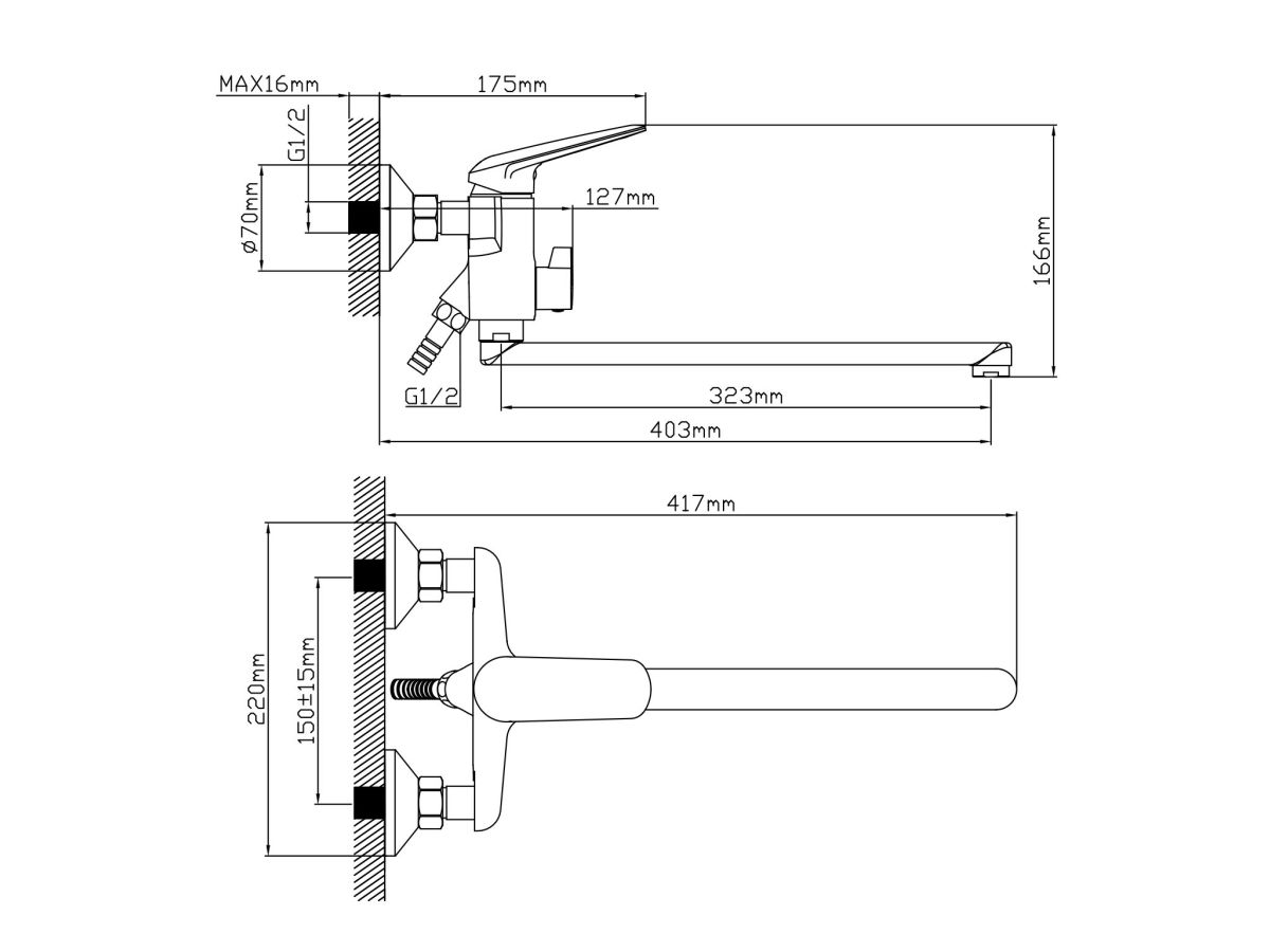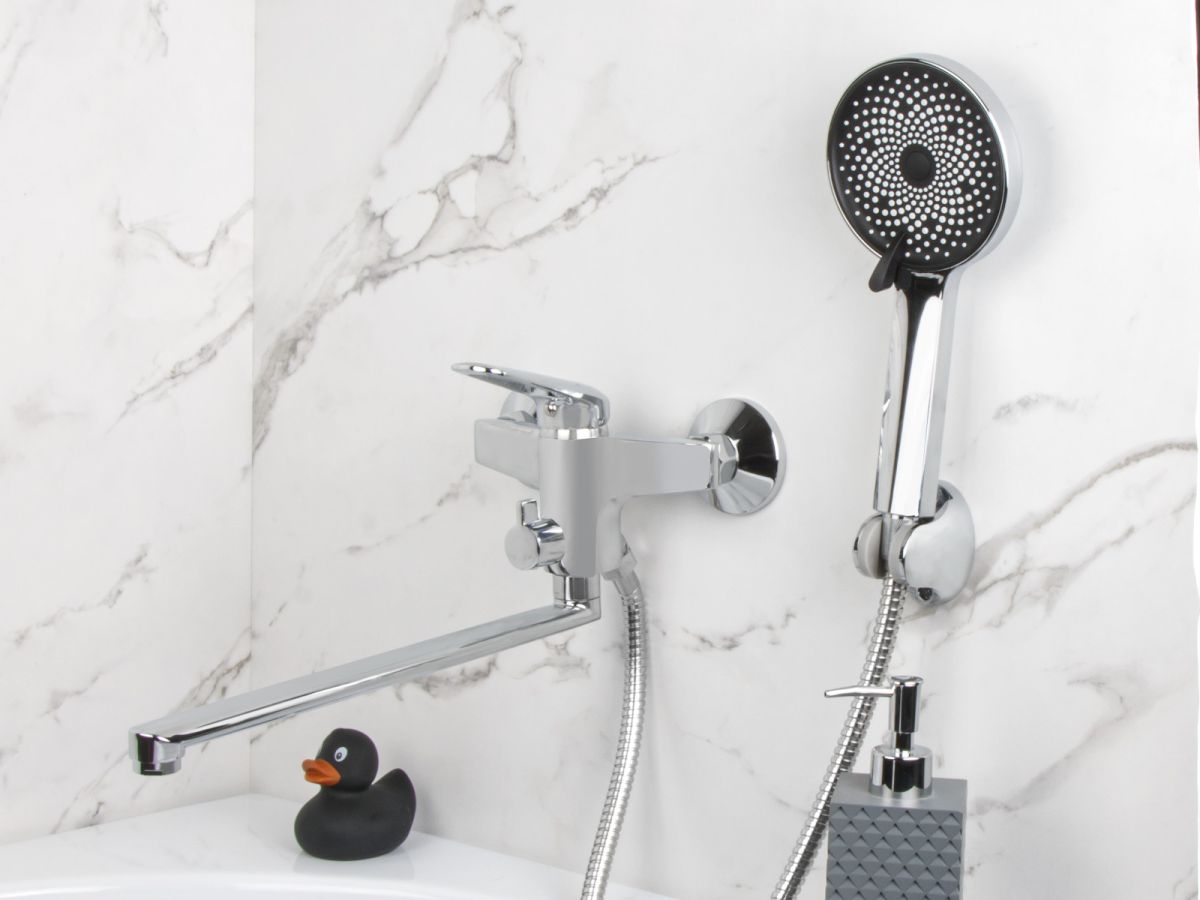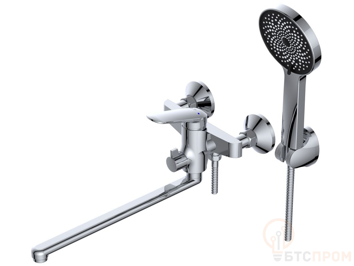 Смеситель для ванны (Lt) D35, серия POS AV Engineering (Длинный L-излив, длина 323 мм, лейка и шланг в комплекте, поворотный) AVPOS7-A175-122