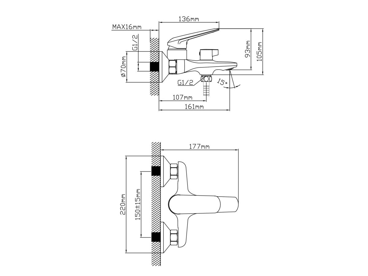 Длина излива: 177 мм