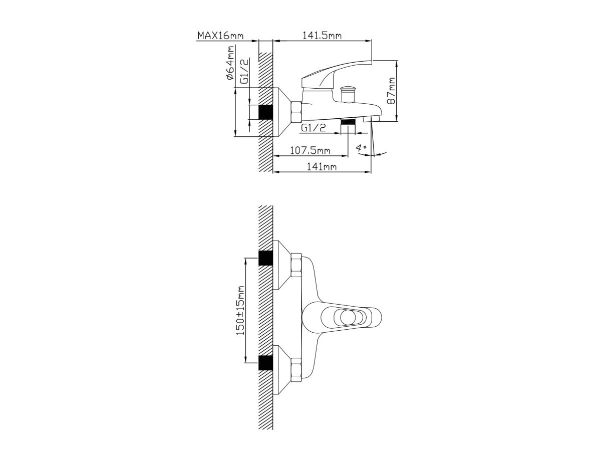Смеситель для ванны (Lt) D35, серия URS AV Engineering (Короткий излив, длина 141 мм, лейка и шланг в комплекте, монолитный) AVURS3-A120-330