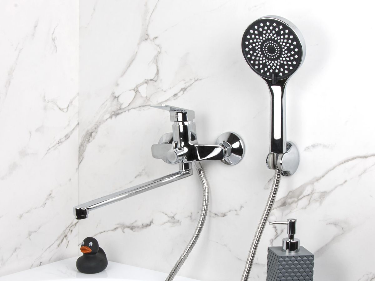 Смеситель для ванны (Lt) D35, серия WIN AV Engineering (J-излив, длина.225 мм, лейка и шланг в комплекте, поворотный) AVWIN7-A165-122