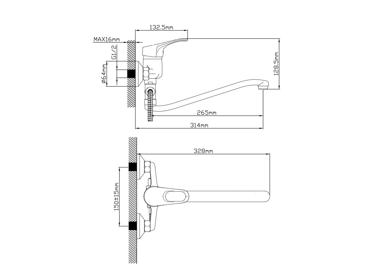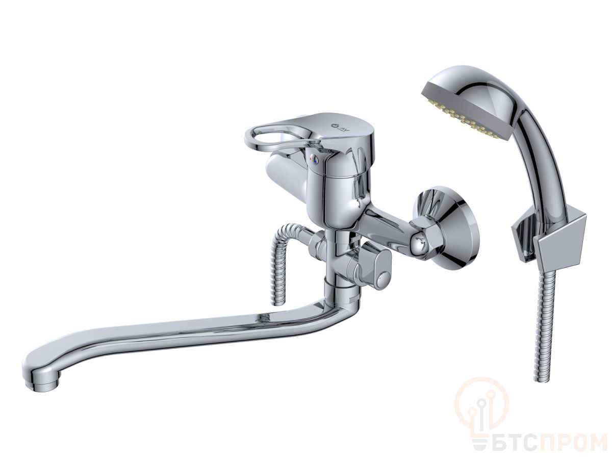 Смеситель для ванны (Lt) D40, серия BAS AV Engineering (Длинный L-излив, длина 265 мм., лейка и шланг в комплекте, поворотный.) AVBAS7-A294-421