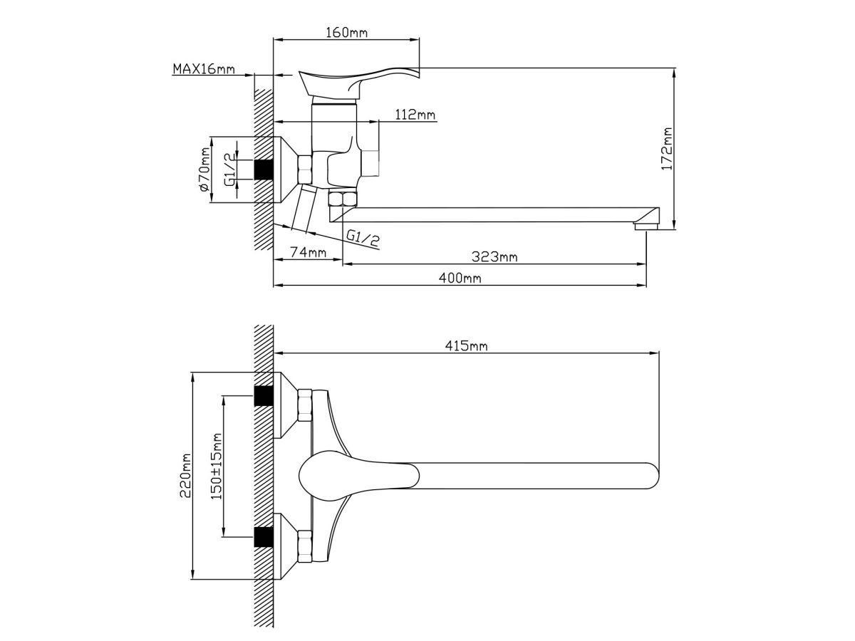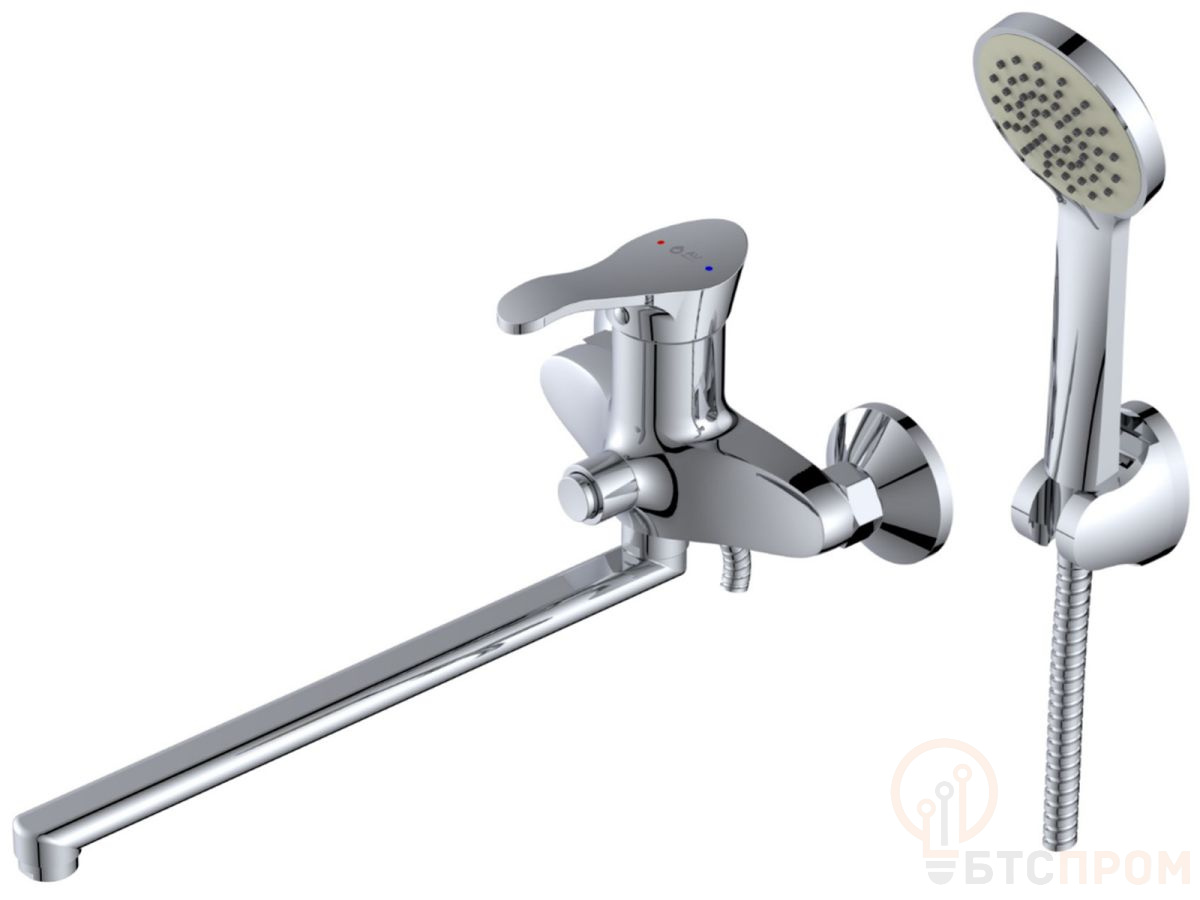 Смеситель для ванны (Lt) D40, серия JAS AV Engineering (Длинный L-излив, длина 323 мм, лейка и шланг в комплекте, поворотный) AVJAS7-A080-222