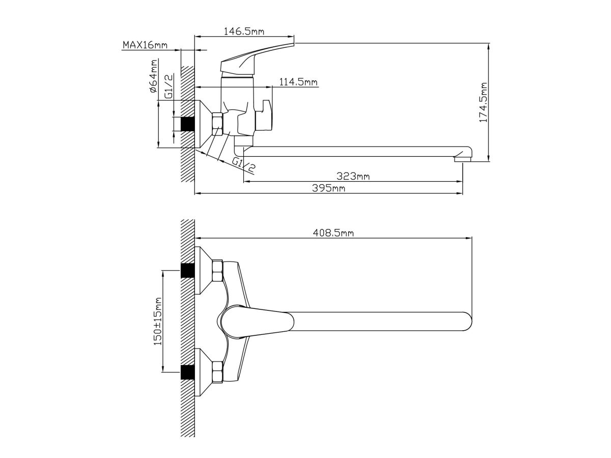 Смеситель для ванны (Lt) D40, серия ROM AV Engineering (Длинный L-излив, длина 323 мм, высота 174 мм, поворотный) AVROM7-A103-222