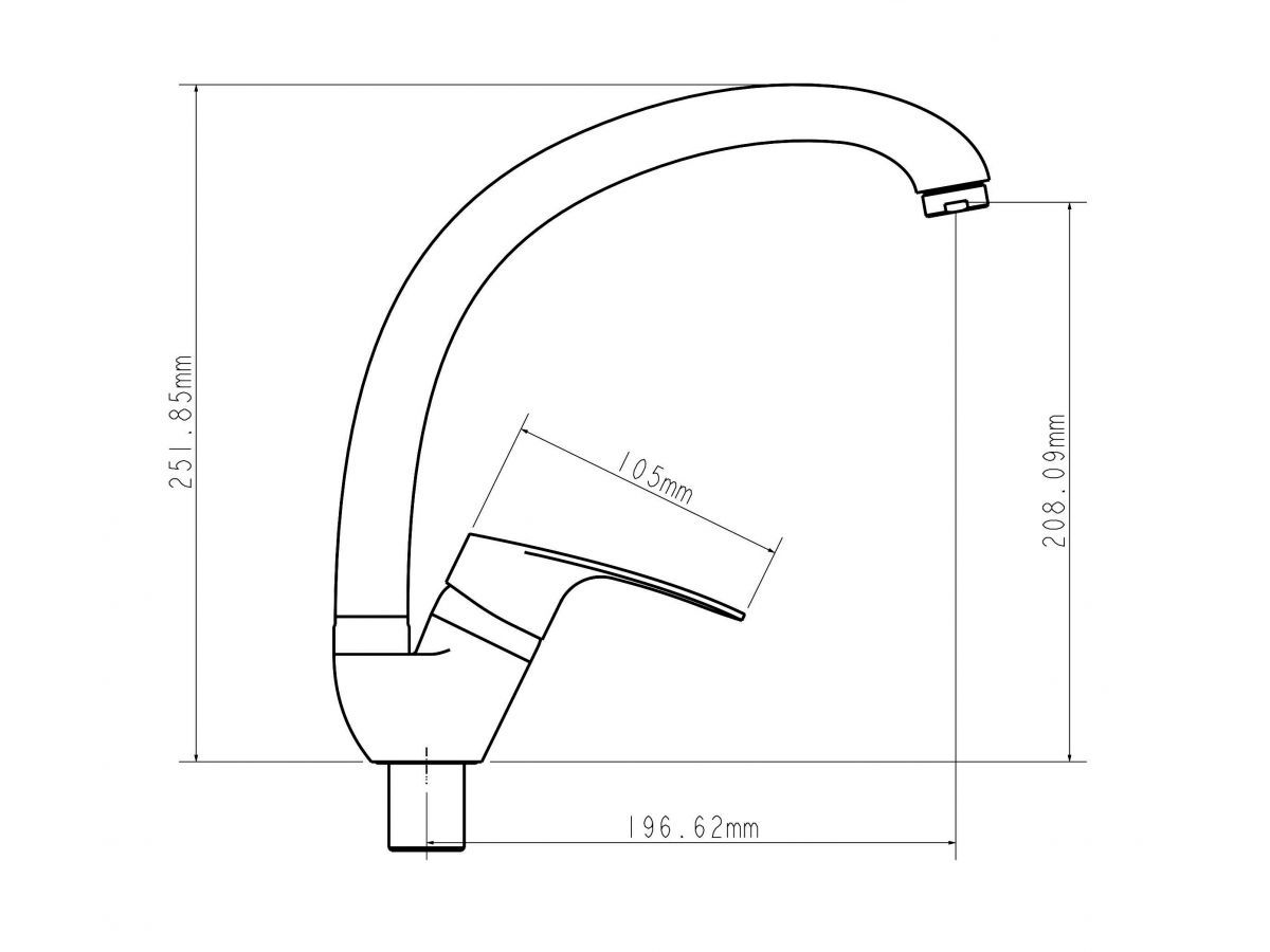 Смеситель для кухни D35-A, серия 250, ECONOCE (С-излив, длина 167 мм, высота 208 мм, поворотный) EC0254
