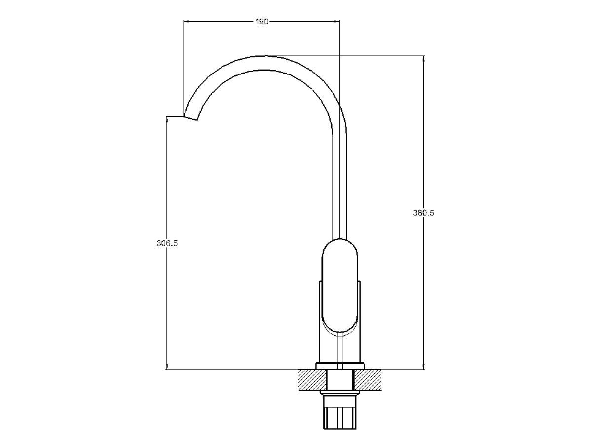 Смеситель для кухни D35-A, серия 390 ECONOCE (J-излив, длина 190 мм, высота 309 мм, поворотный) EC0392