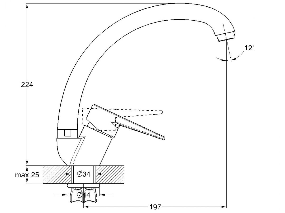 Смеситель для кухни D35-A, серия 400 ECONOCE (C-излив, длина 197 мм, высота 224 мм, поворотный) EC0403