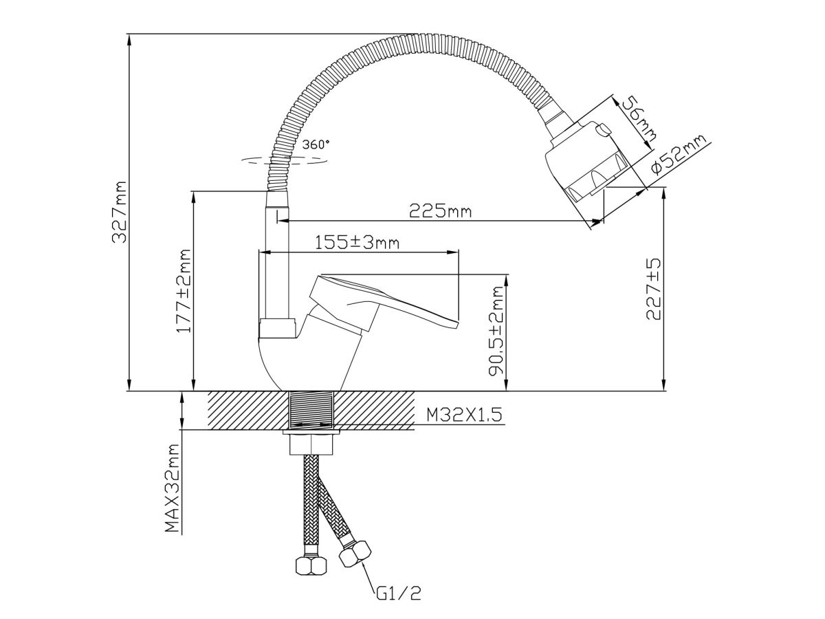 Смеситель для кухни D35, серия 660 ECONOCE (Гибкий двухрежимный излив, длина 225 мм, высота 232 мм, поворотный) EC0662