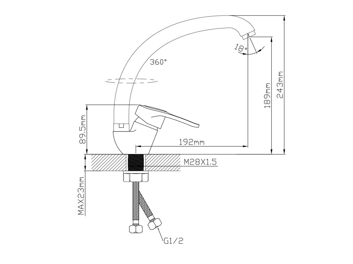Смеситель для кухни D35, серия 660 ECONOCE (G-излив, длина 192 мм, высота 189 мм, поворотный) EC0663