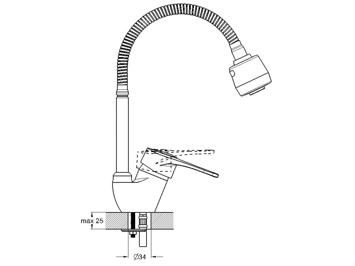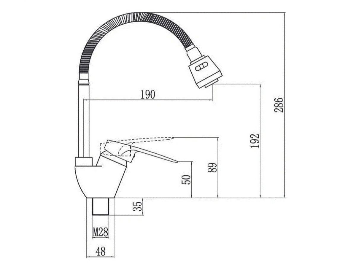 Смеситель для кухни D40-A, серия 370 ECONOCE (Гибкий двухрежимный излив, длина 190 мм, высота 286 мм) EC0370