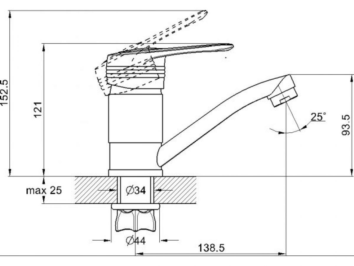 Смеситель для кухни D40-A, серия 450 ECONOCE (Длинный L-излив, длина 139 мм, высота 153 мм, поворотный) EC0451