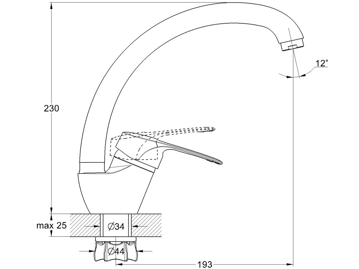 Смеситель для кухни D40-A, серия 470 ECONOCE (J-излив, длина 193 мм, высота 230 мм, поворотный) EC0470