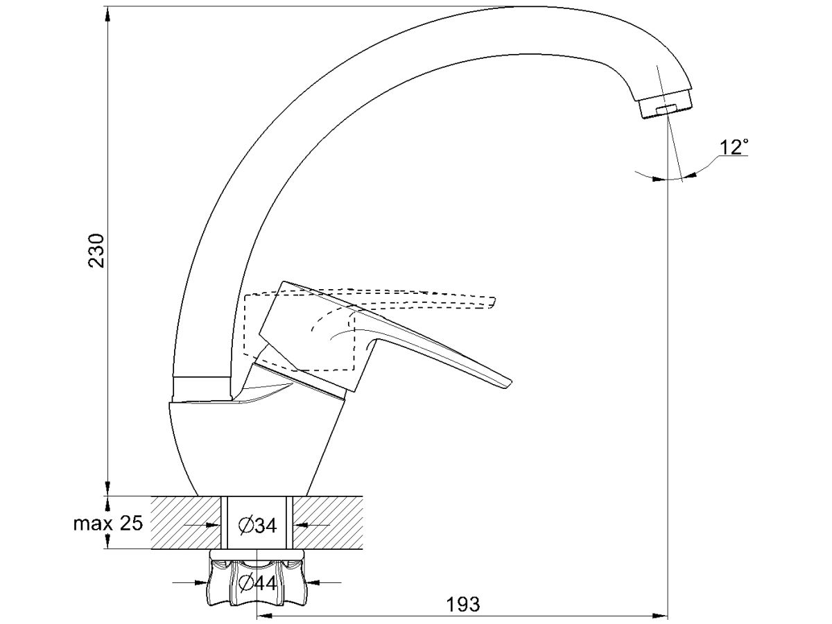 Смеситель для кухни D40-A, серия 470 ECONOCE (J-излив, длина 193 мм, высота 230 мм, поворотный) EC0471