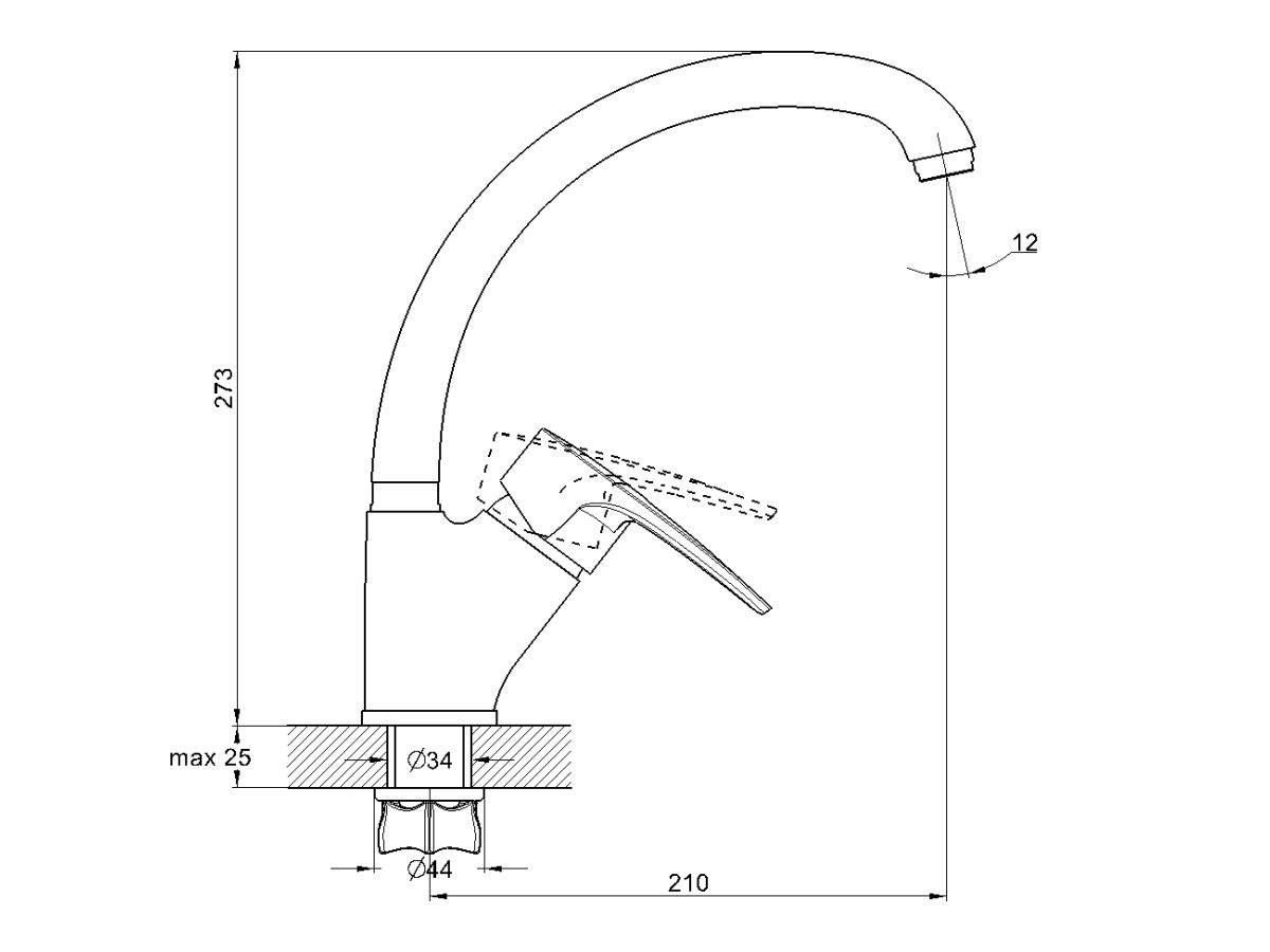 Смеситель для кухни D40-A, серия 560 ECONOCE (J-излив, длина 210 мм, высота 273 мм, поворотный) EC0560
