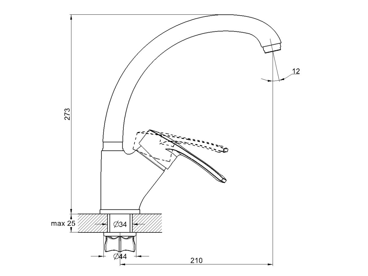 Смеситель для кухни D40-A, серия 560 ECONOCE (J-излив, длина 210 мм, высота 273 мм, поворотный) EC0561