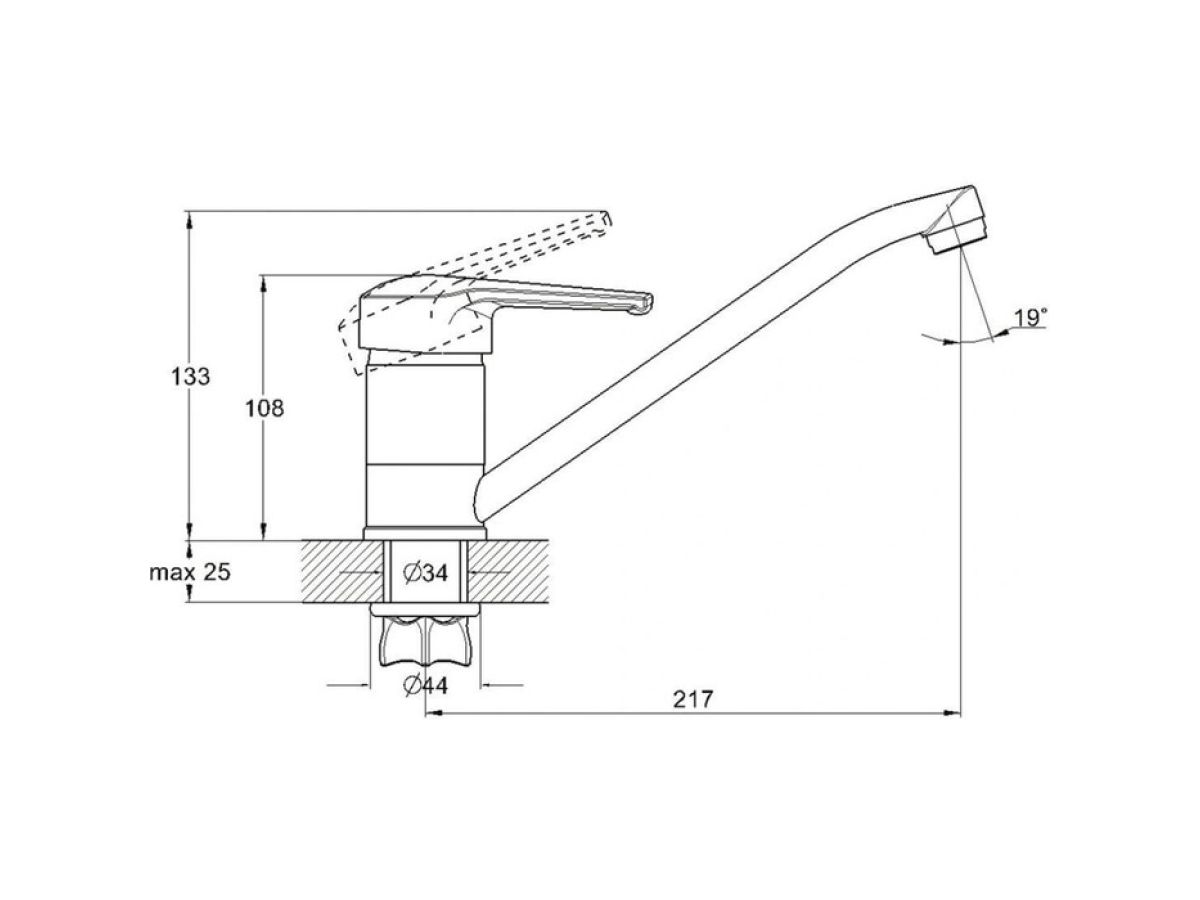 Смеситель для кухни D40-A, серия 630 ECONOCE (Длинный L-излив, длина 217 мм, высота 108 мм, поворотный) EC0631