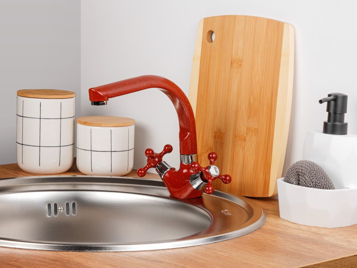 Смеситель для кухни вентильный (тип I), серия 230 красный ECONOCE (J-излив, длина 190 мм, высота 175 мм, поворотный) EC0235