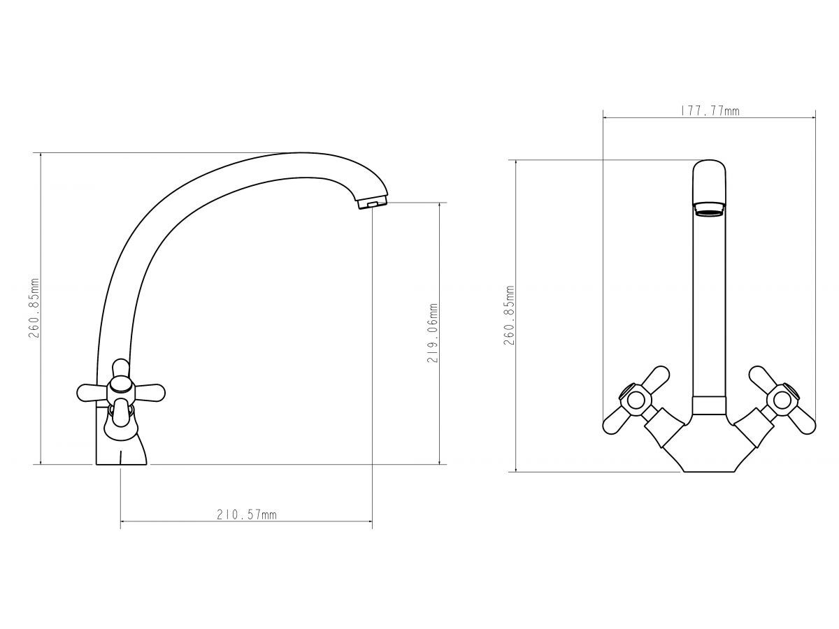 Смеситель для кухни вентильный (тип I), серия 340, ECONOCE (C-излив, длина 210 мм, высота 219 мм, поворотный) EC0347