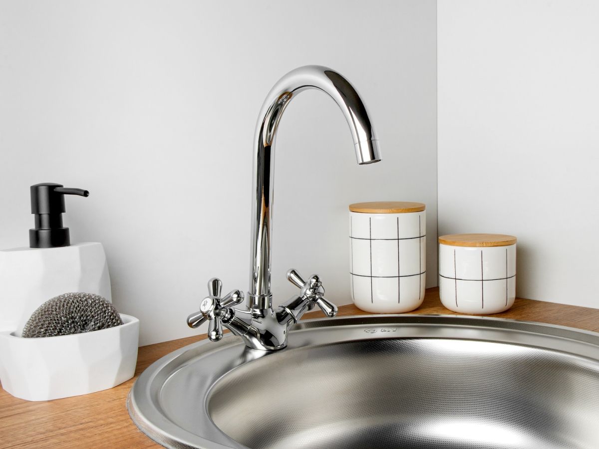 Смеситель для кухни вентильный (тип I), серия 340, ECONOCE (J-излив, длина 333 мм, поворотный) EC0345