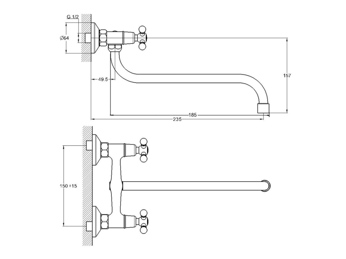 Смеситель для кухни вентильный (тип I), серия 490 ECONOCE (Короткий поворотный S-излив, длина 185 мм, высота 157 мм, поворотный) EC0490-1