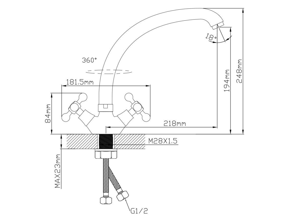 Смеситель для кухни вентильный (тип I), серия 500 ECONOCE (J-излив, длина 218 мм, высота 194 мм, поворотный) EC0501
