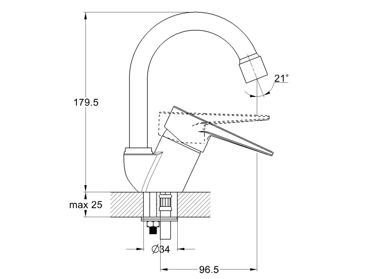 Смеситель для умывальника D35-A, серия 640 ECONOCE (J-излив, длина 97 мм, высота 180 мм, поворотный) EC0640