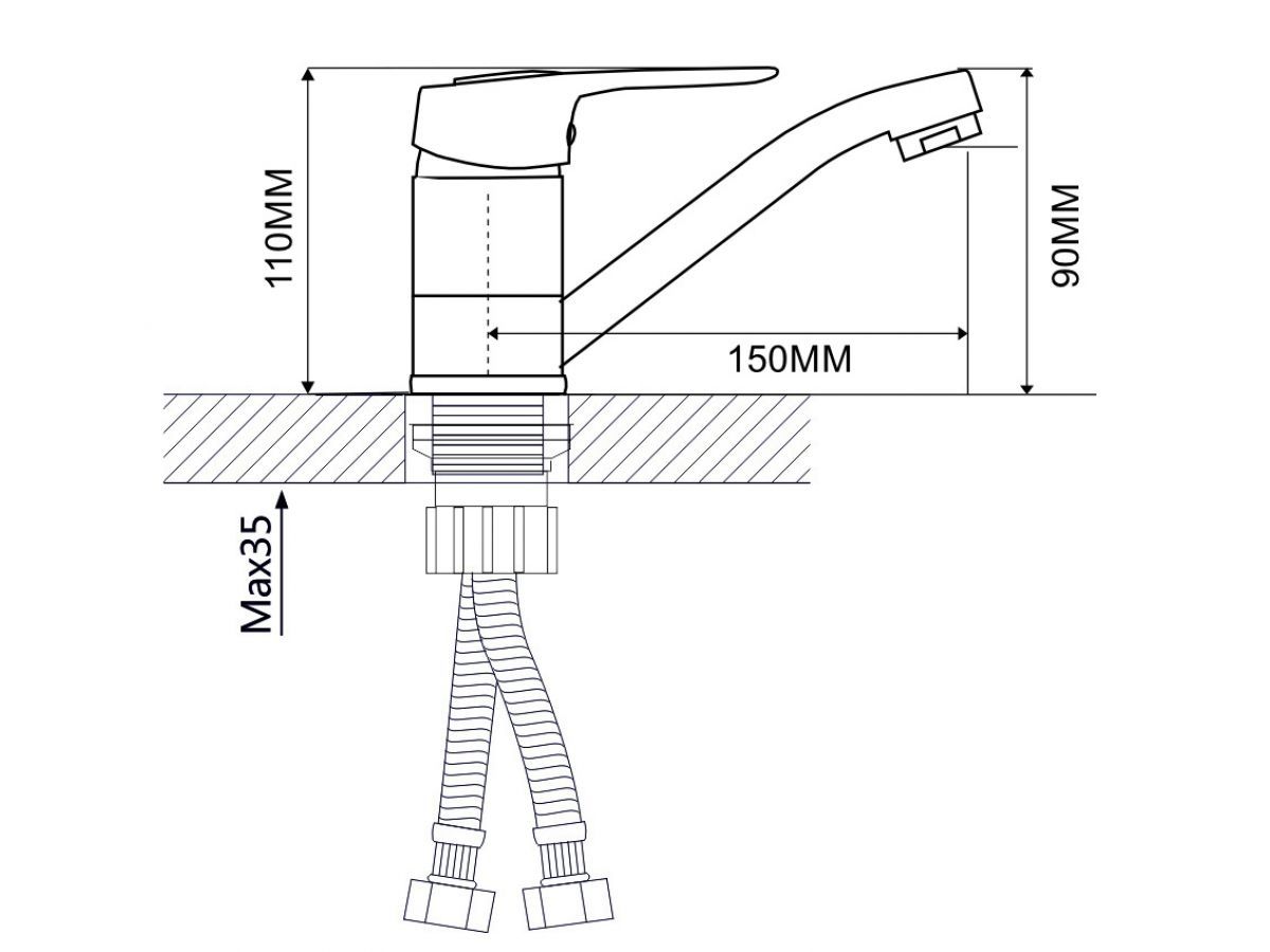 Смеситель для умывальника D40-A, серия 240, ECONOCE (Излив, длина 150 мм, высота 110 мм, поворотный) EC0249