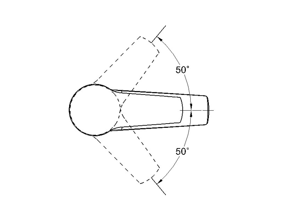 Угол поворота рукоятки гор.: 50°;